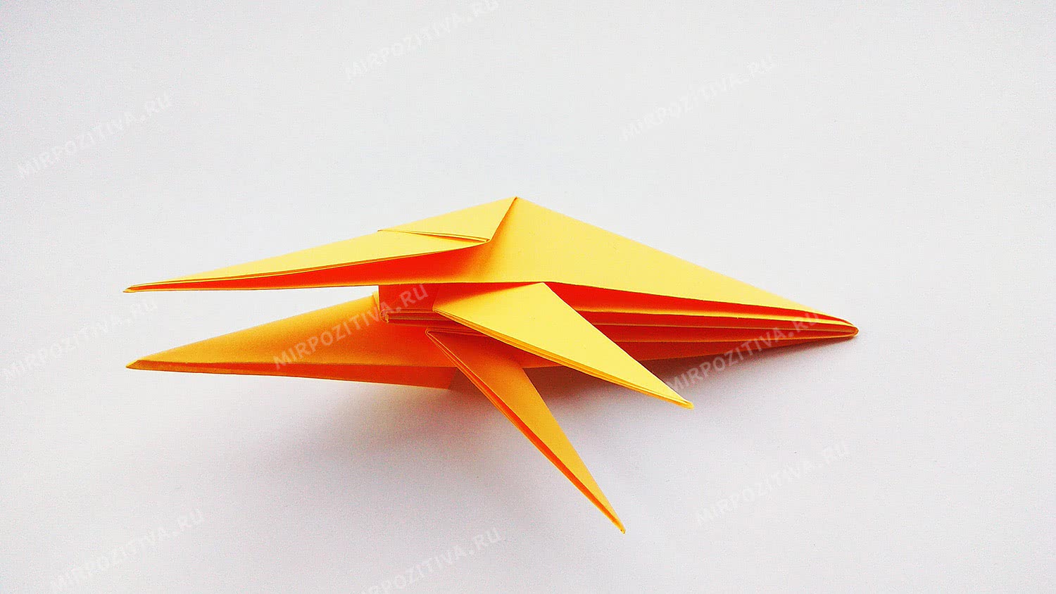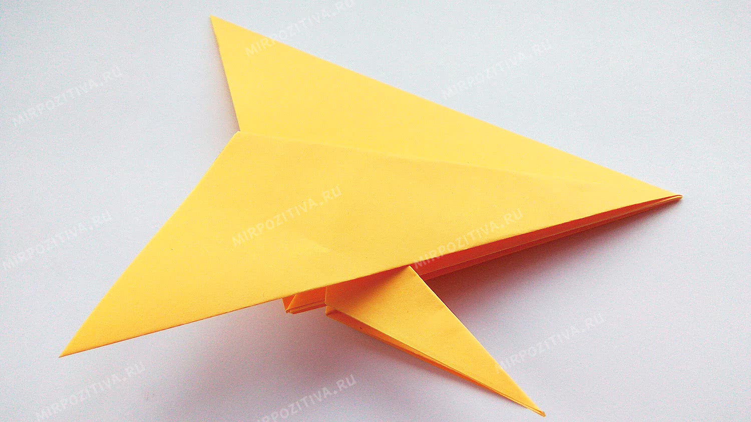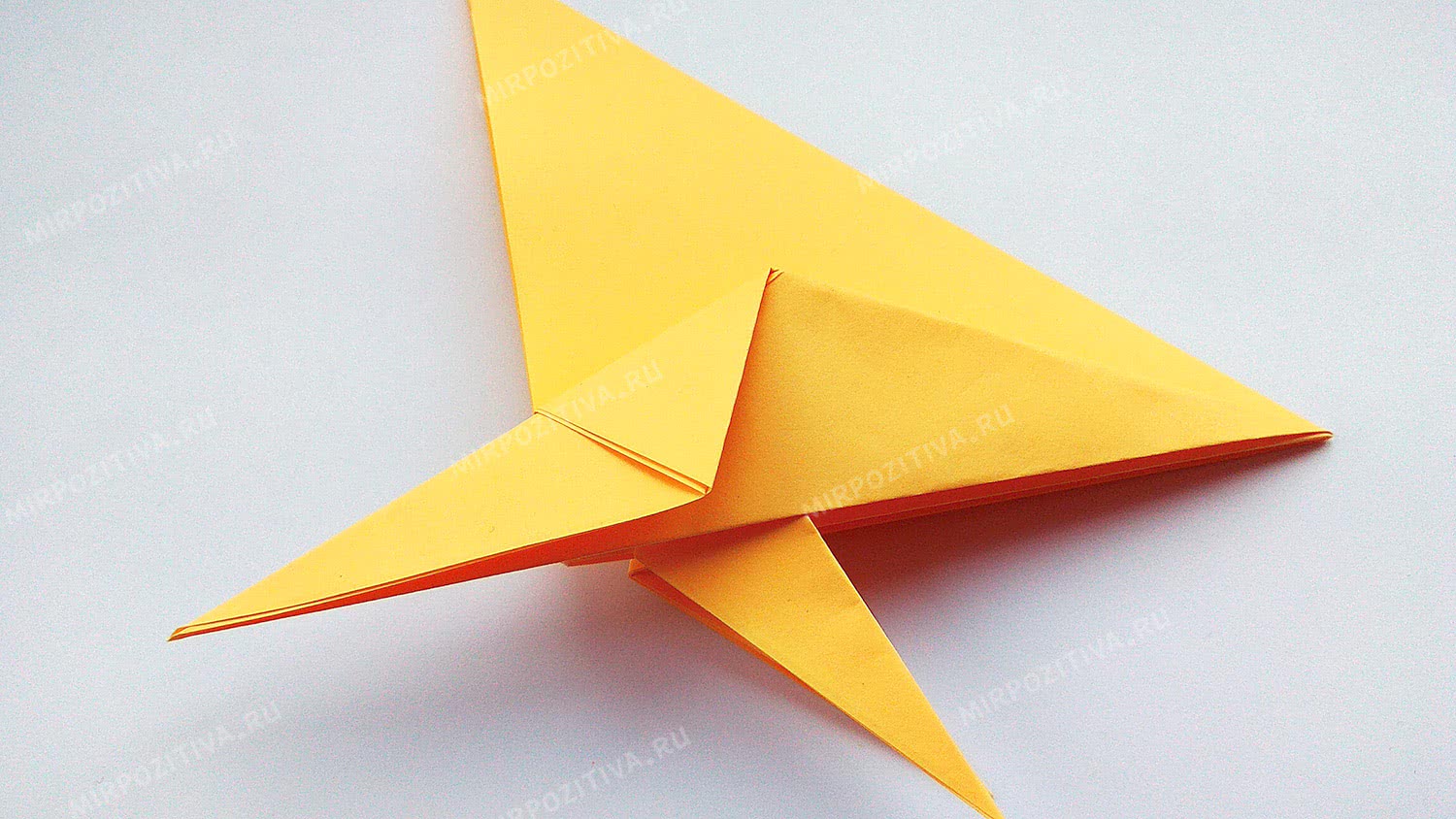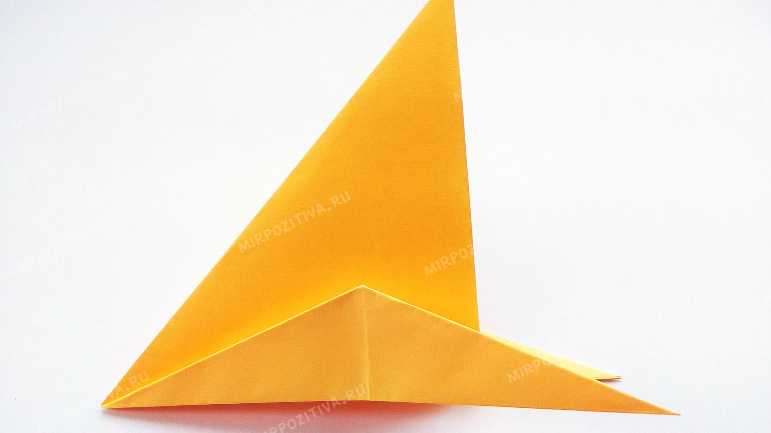 - Загните верхнюю часть (это будет хвост) вправо, вдоль линии крыла.