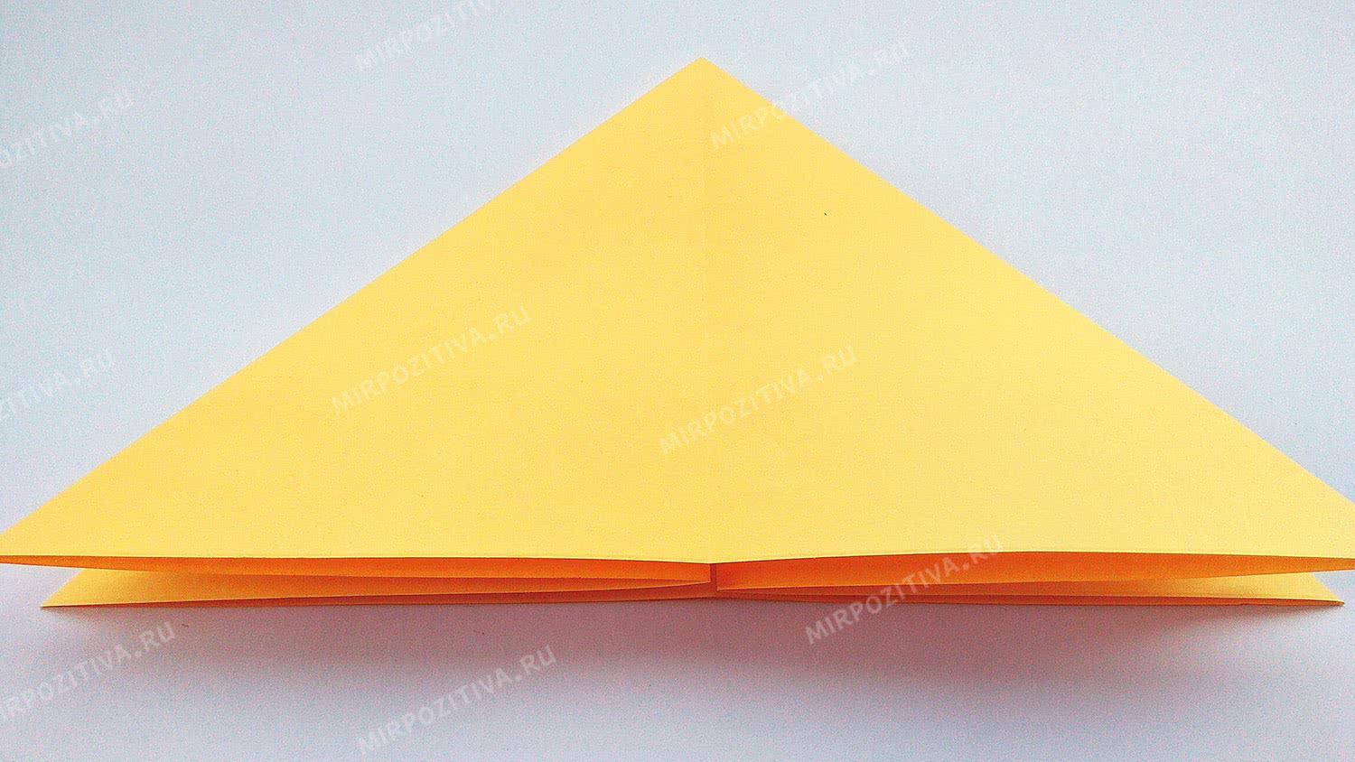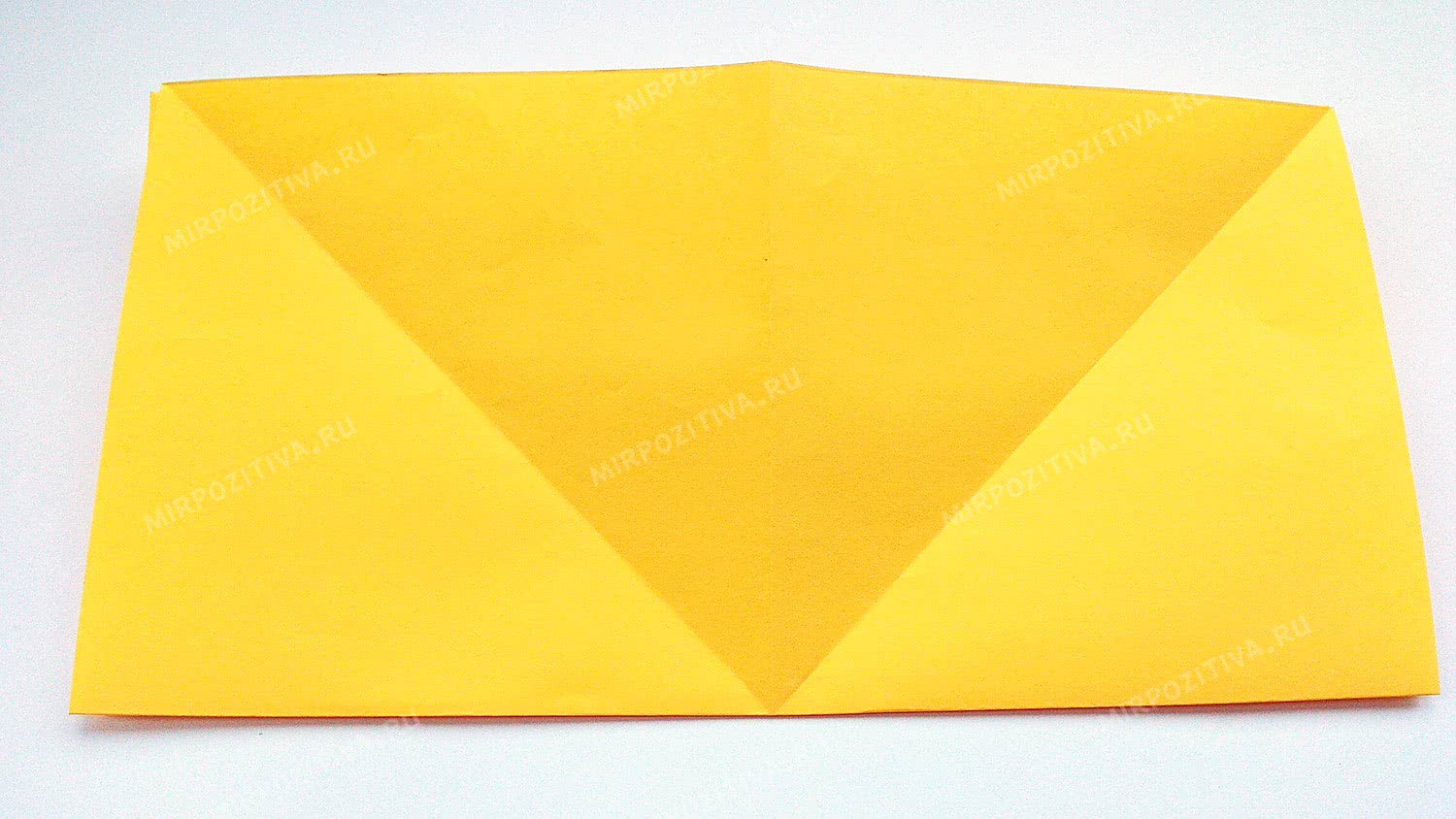 - Левый и правый углы заверните к середине, чтобы верхушки треугольников встретились точно в центре.