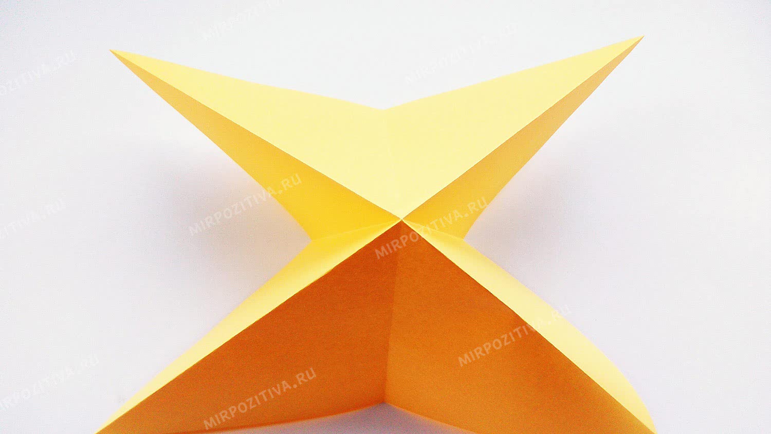 Шаг 3. Если вы правильно сложите, то выделится модель с четырьмя острыми углами. Нужно заутюжить эти углы.