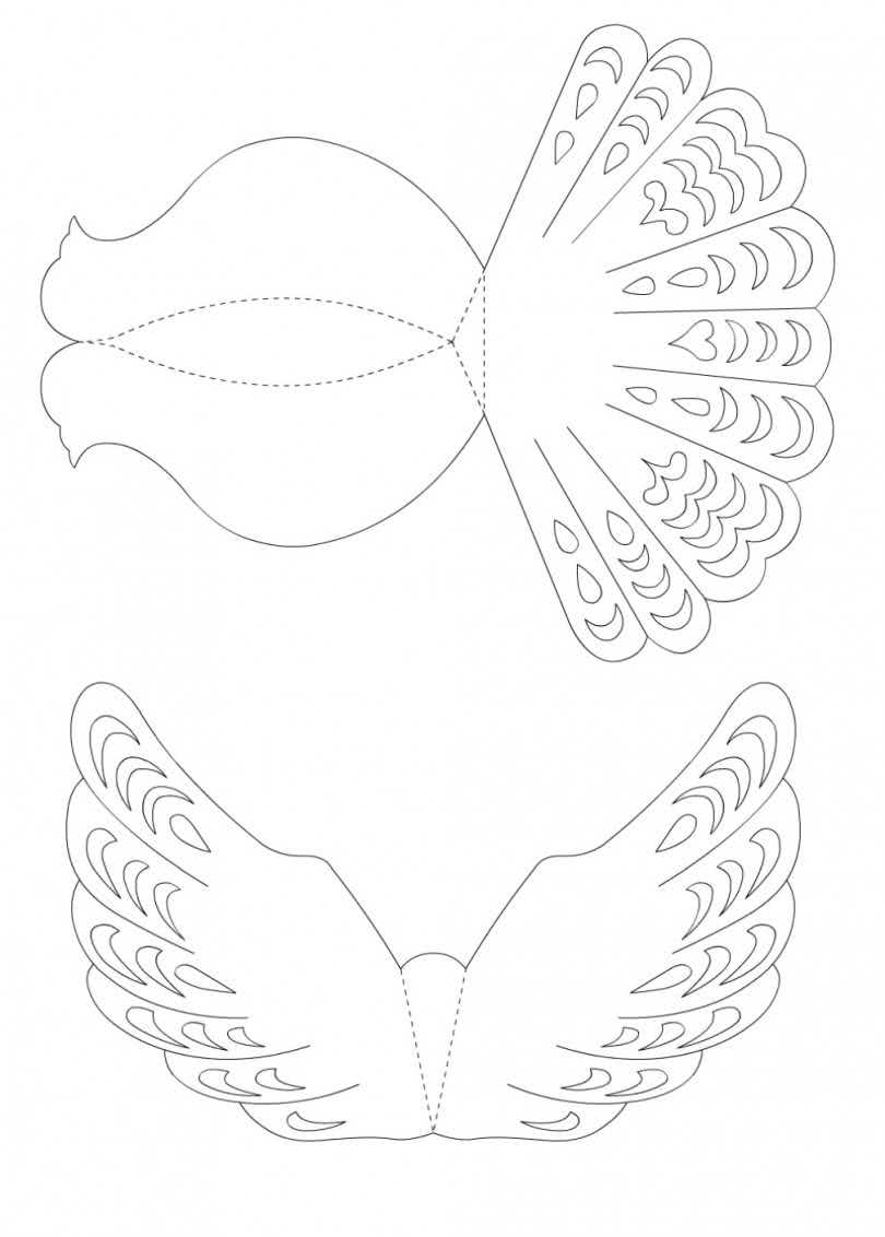- Сделайте по шаблону надрезы у крылышек, что-то вроде имитации. Поделка практически готова.