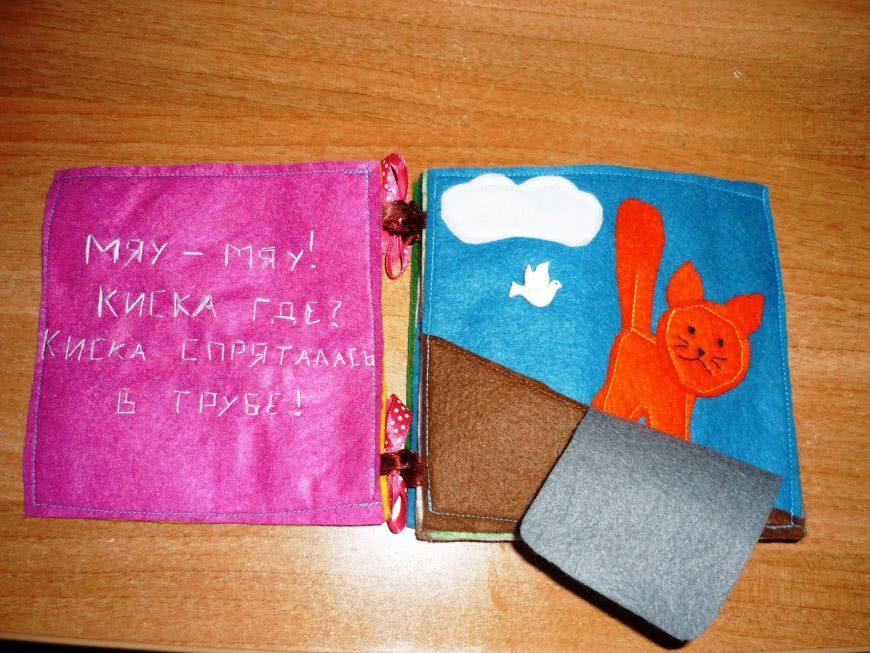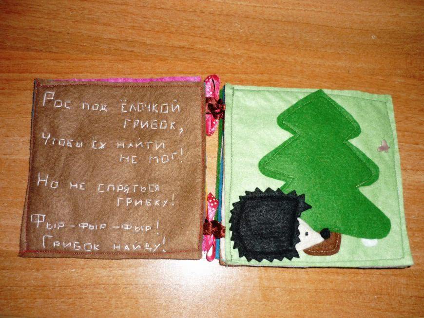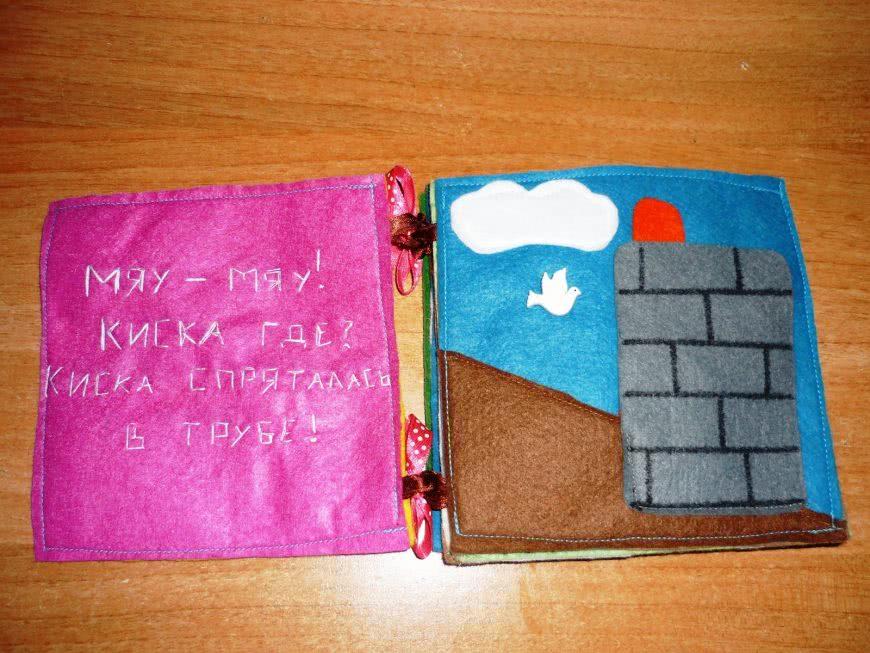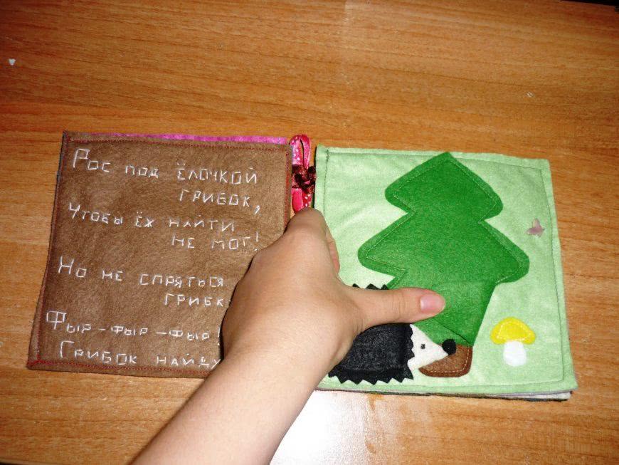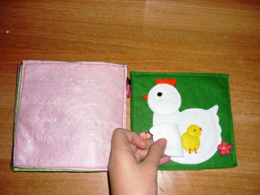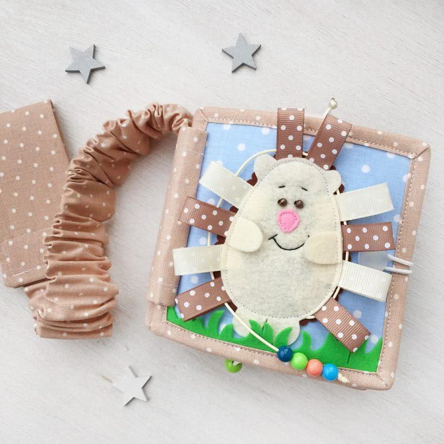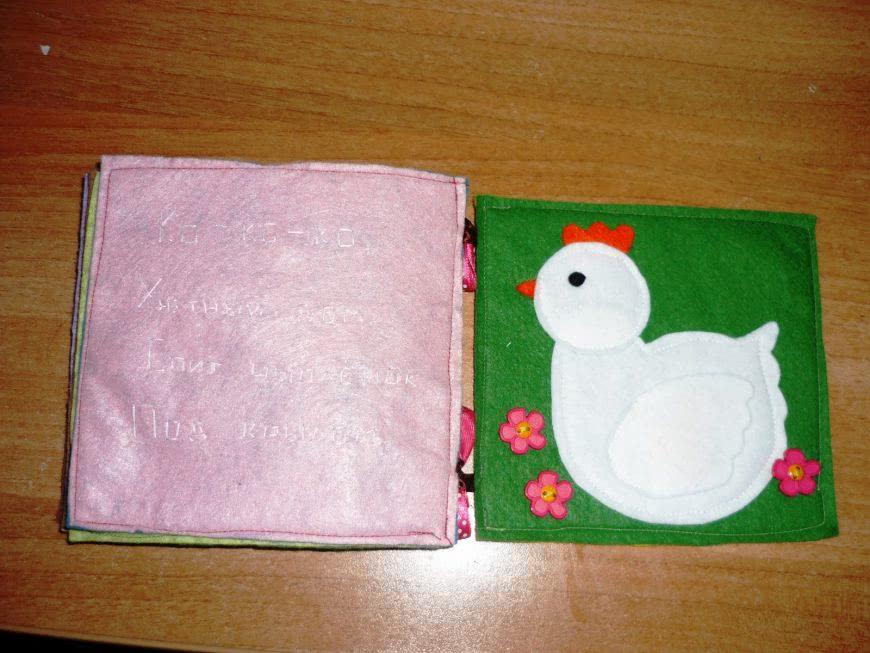 На обложке можно указать имя ребёнка, для которого она шьётся. А можно придумать специальное название для книжечки. Хотя и сама обложка может уже быть с развивающими элементами.