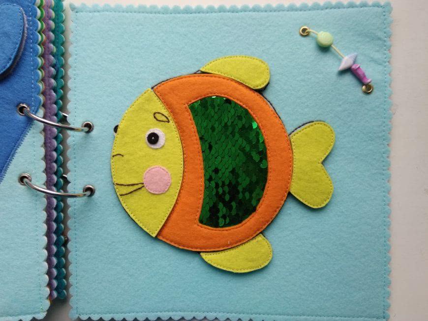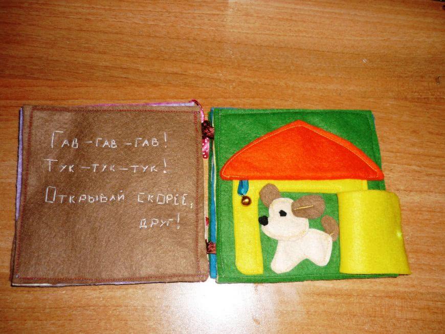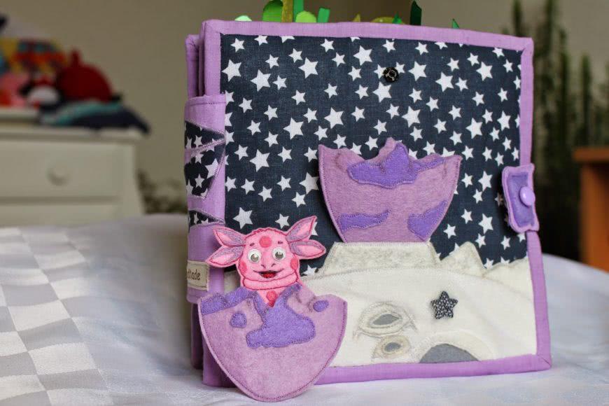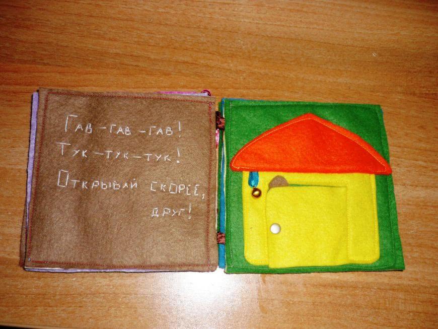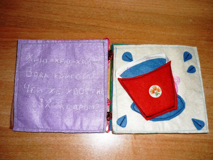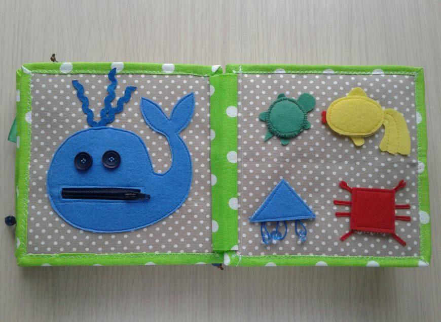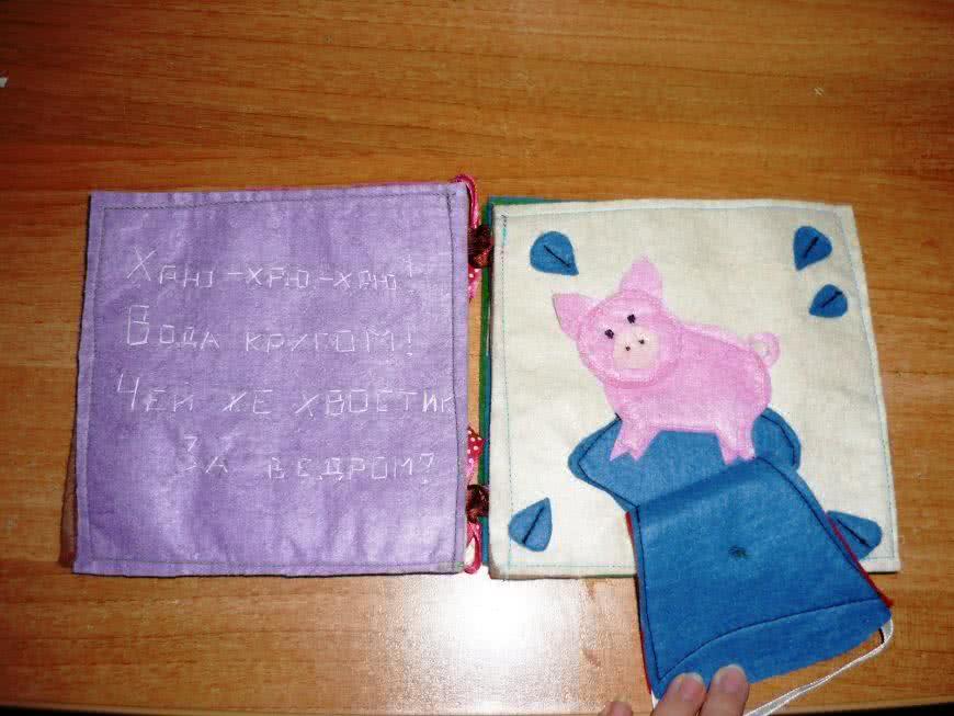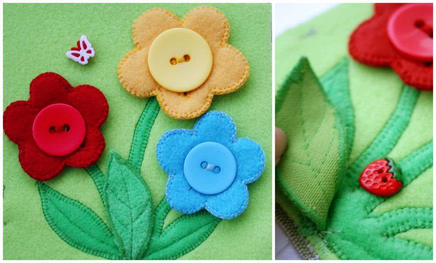 На обложке можно указать имя ребёнка, для которого она шьётся. А можно придумать специальное название для книжечки. Хотя и сама обложка может уже быть с развивающими элементами.