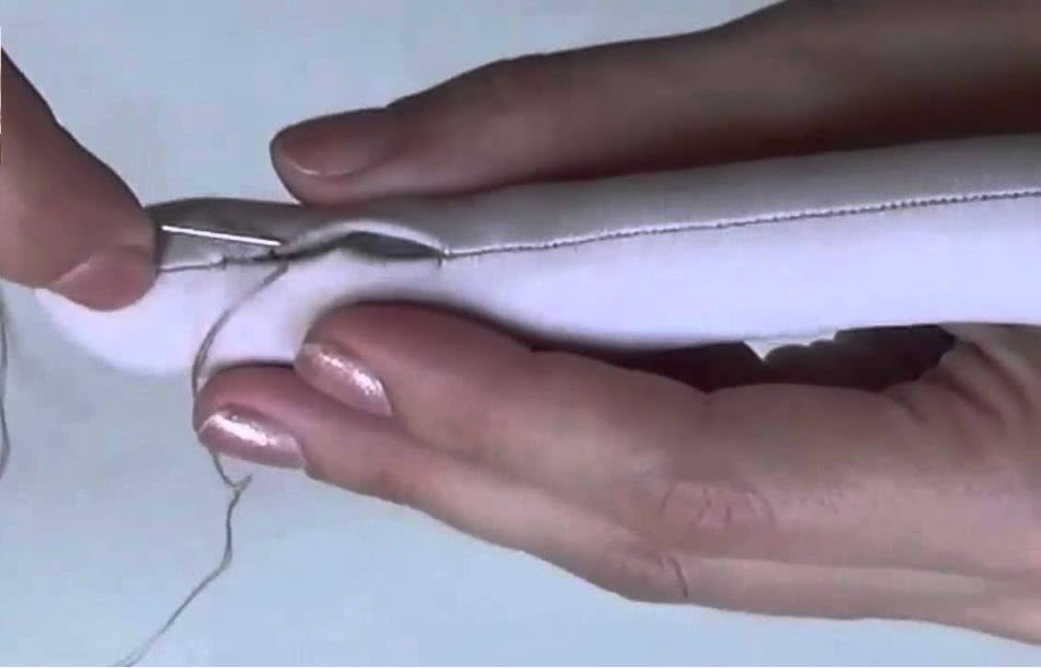 После того как все детали будут обведены, приступают к их сшиванию, изнаночная сторона прошивается, остается лишь место для набивания пространства наполнителем. Чтобы затянуть отверстие, также используют нитки, а поверх шва крепится накладка.