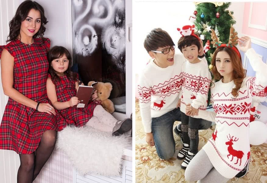Нужно заранее поинтересоваться, какие декорации будут на студии. На новогоднюю фотосессию можно создать семейный уютный фэмили-лук с такой одеждой: красные шарфы, свитера с оленями или зимними узорами, новогодние колпаки. Или же, наоборот, подобрать праздничные нарядные комплекты, которые будут подходить к новогоднему декору: нарядной елке, камину, праздничному столу, гирляндам. Выбрав сказочный вариант фотозоны, надевайте пышное бальное платье, костюм принца, наряд феи.