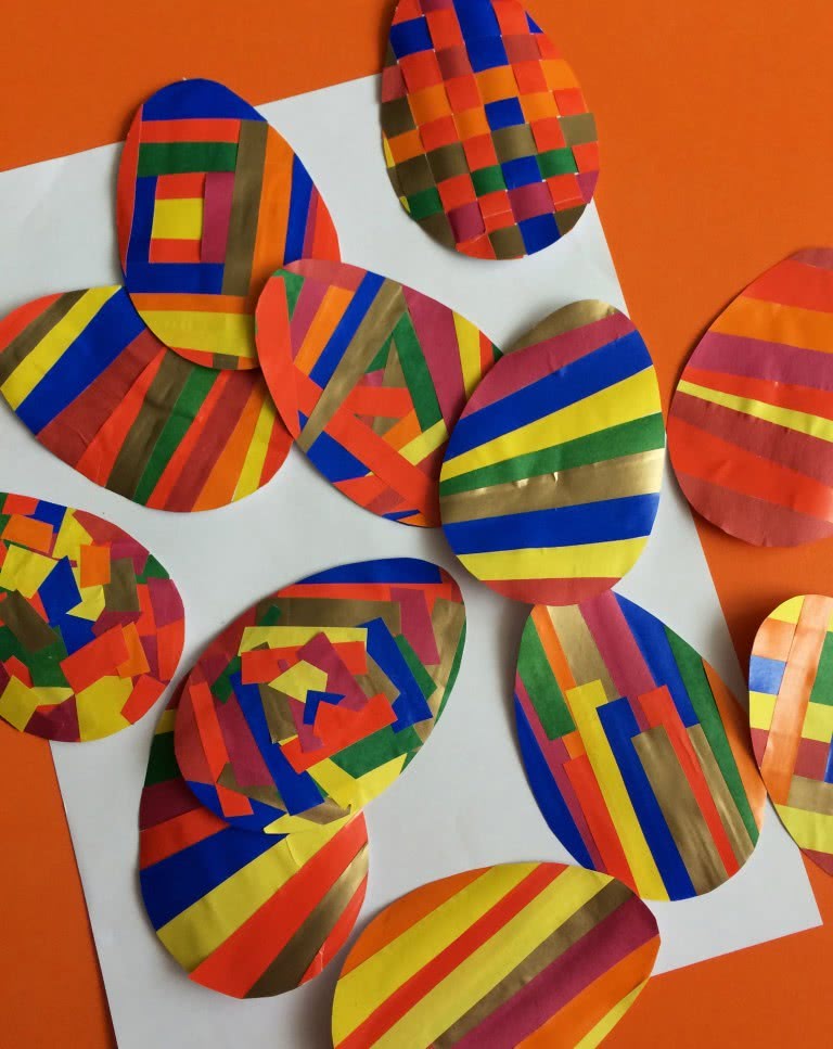 - Каждую заготовку сворачивают в вытянутый эллипс, склеивая противоположные концы полоски.