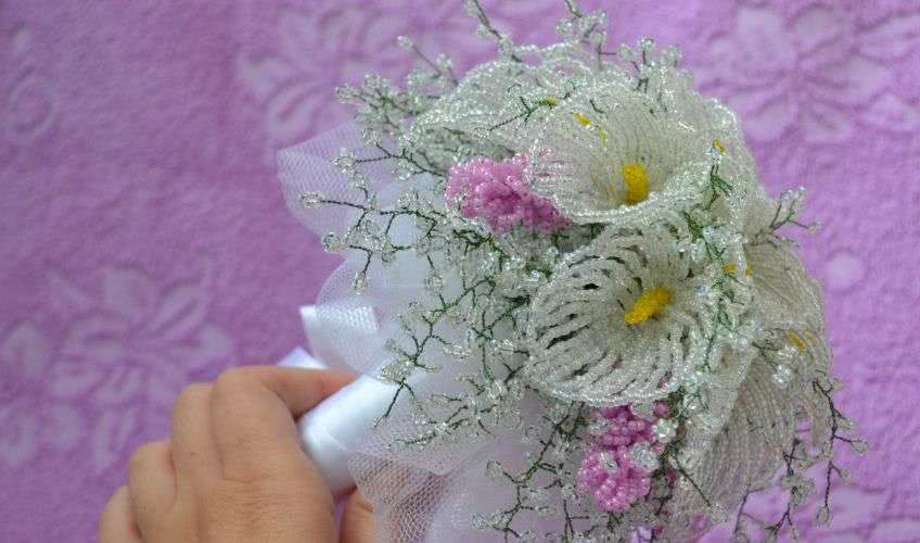 Фото свадебных букетов всегда поражает воображение, поэтому необходимо подобрать бисерную композицию, которая будет соответствовать образу невесты. Существует множество вариантов, ведь всё зависит от фантазии новобрачных и количества средств, выделенных на аксессуары.