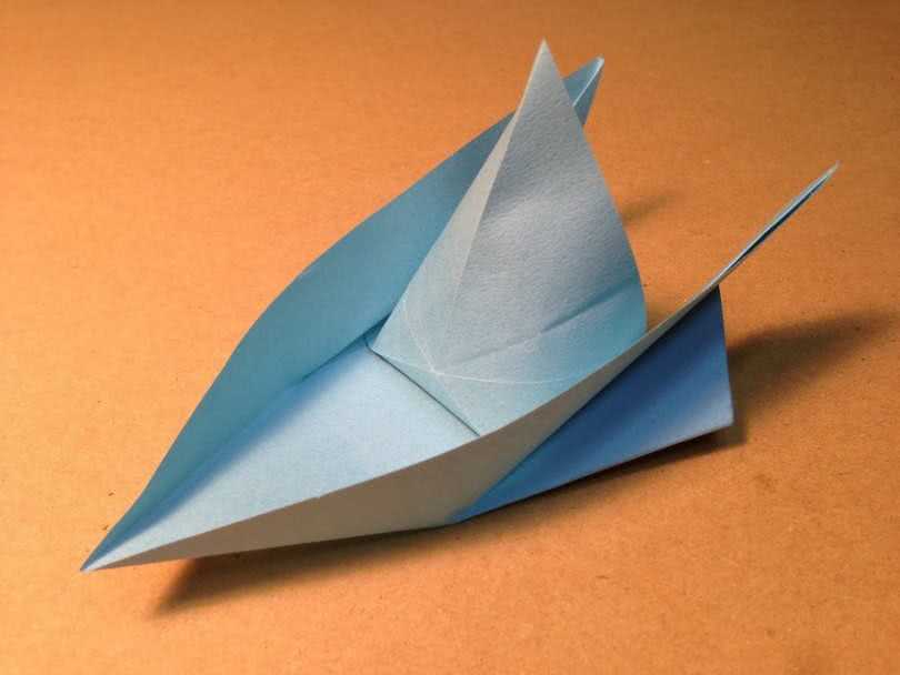 - Немного отгибаем центральные части боковых сторон, чтобы был виден треугольник внутри. Он изображает парус.