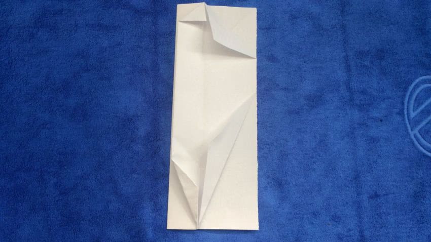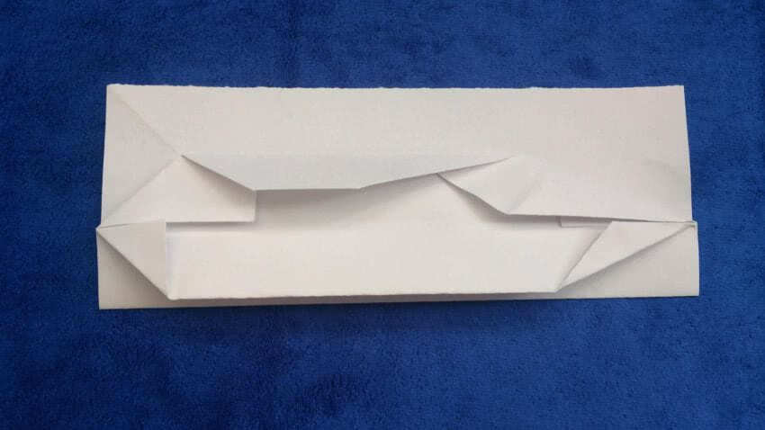 - Теперь загните углы аналогично предыдущим в той части, где ранее делали два угла, а затем один угол из двойного листа с противоположной стороны.