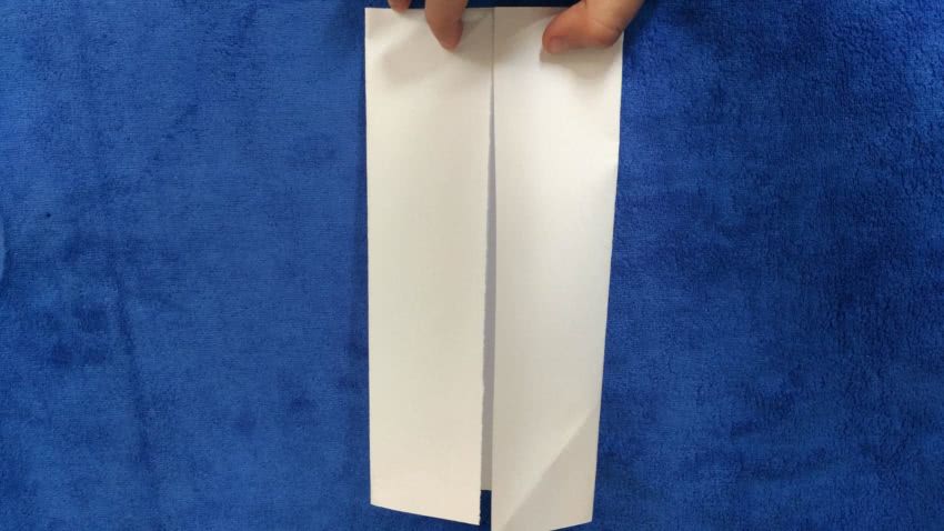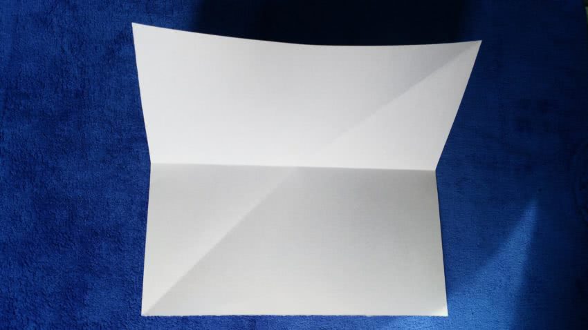 - Прямоугольный лист нужно согнуть пополам, таким образом выделяя в нем середину;