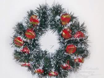 - Между конфетами можно наклеить стразы, мелкие снежинки или елочные бусы.