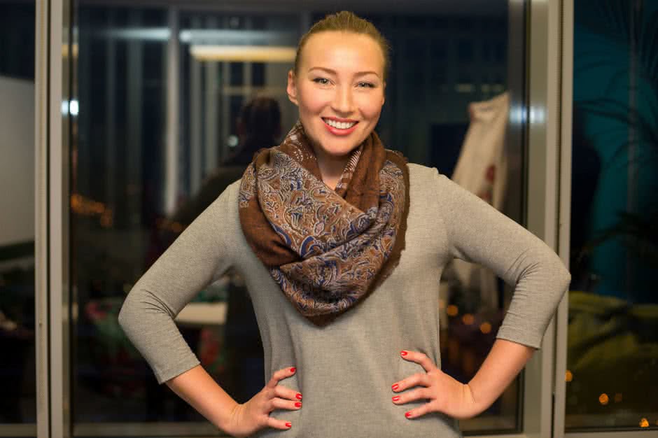 - Как функциональную часть гардероба, вместо шапки. Ткань защитит голову и волосы от ветра, солнца, мороза и дождя.