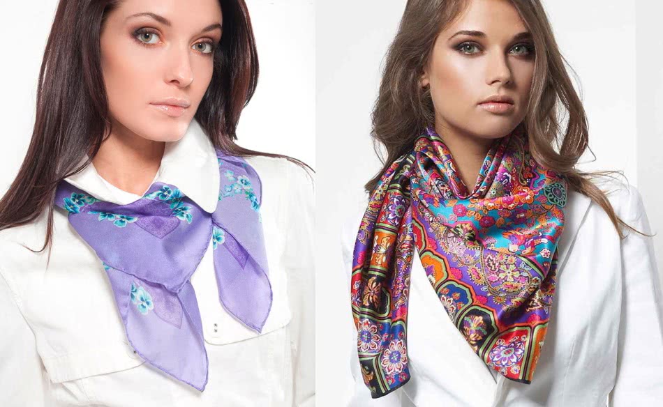 Шелковые платки универсальный аксессуар для офиса. Базовая блузка, рубашка, гольф, пара сережек и красиво завязанный платок — ваш образ запоминающийся и неповторимый.