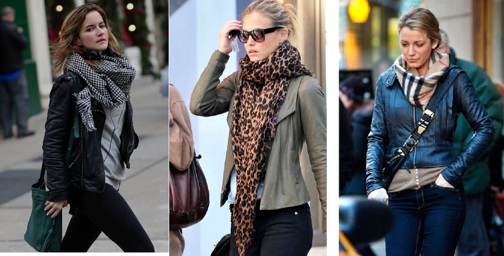 Если вы хотите носить палантин с кожаной куркой, то тут важно соблюдать несколько условий:
