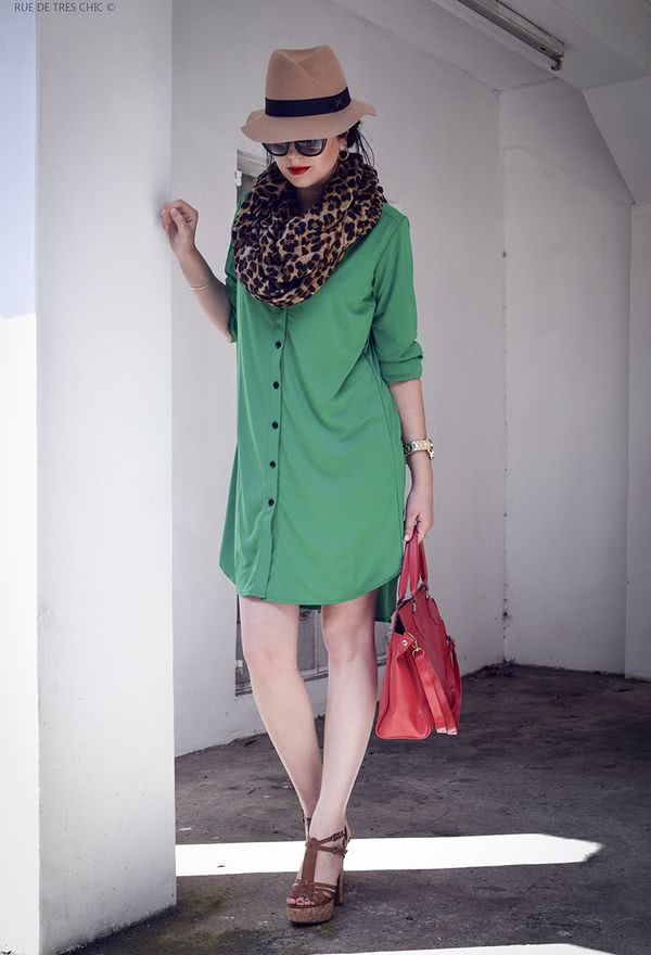 шарф в звериный принт и платье-рубашка