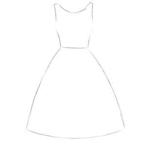 - Как и прежде, начинают рисовать верхнюю часть наряда.