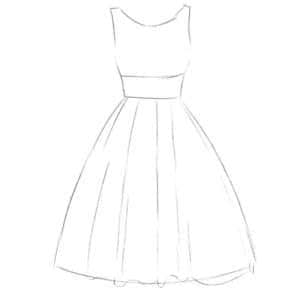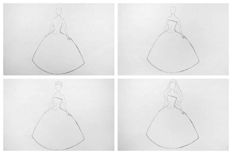 - Теперь можете начать прорисовку деталей платья.