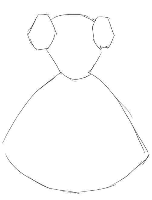 - Две бретели рисуют в виде двух эллипсов, расположенных вертикально. Нижние края фигур убирают с помощью ластика.