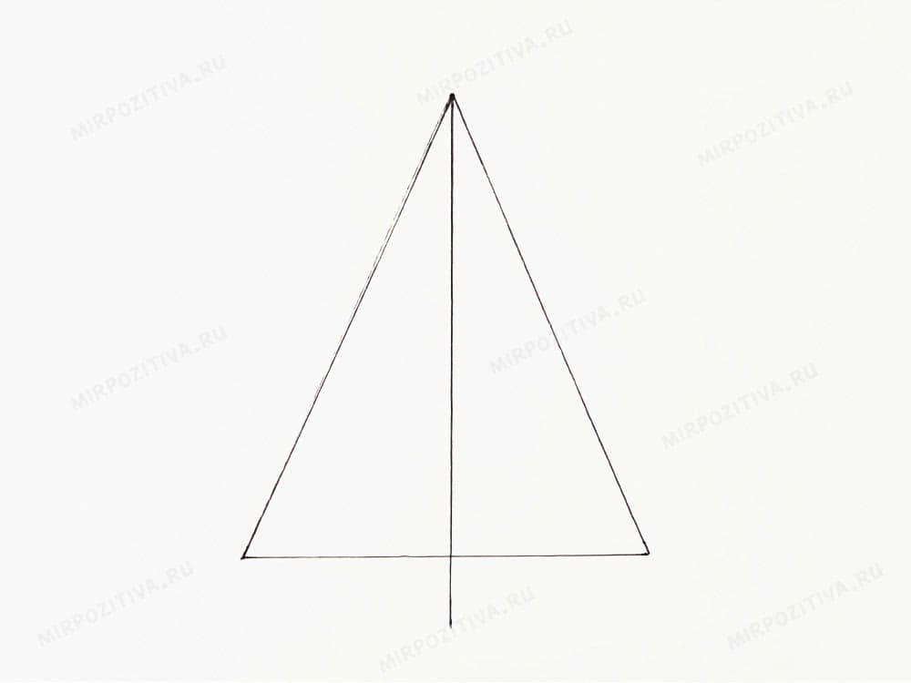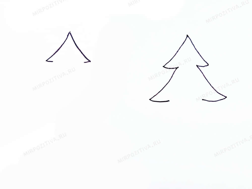 Обратите внимание, что нижнюю часть первого треугольника мы оформляем «зубцами» разного размера. Так, мы изображаем веточки дерева.