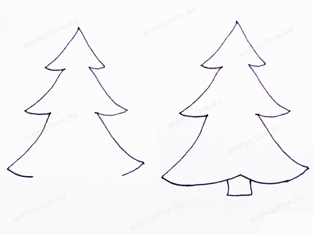 Я тщательно подобрал несколько схем рисования елки различных уровней сложности. Выбери тот, который тебе больше нравится.