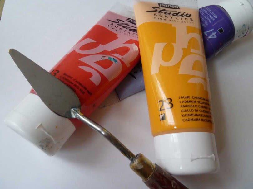 При работе с маслом также актуально использовать лопаточку мастихин. Ею очень удобно создавать рельефы и узоры.