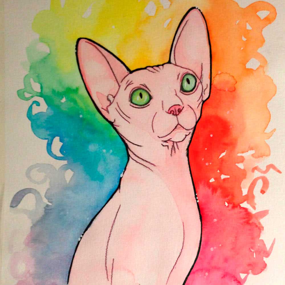 С помощью гуаши можно получить интересную окраску кошачьей шерсти — например, смесь оттенков серого, розового и оранжевого цвета.