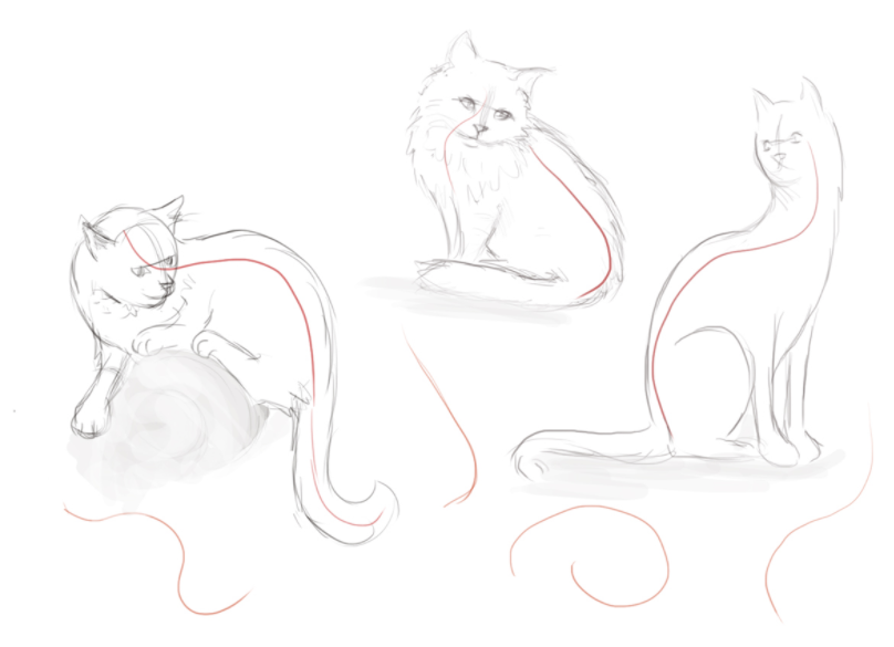 Главной в рисовании животного в статичном положении является линия. Именно она показывает направление движения и изгиб позвоночника.