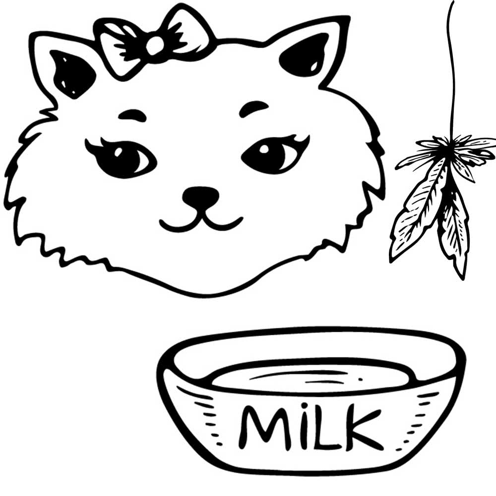 Можно сделать такой кошачий сет – мордочка, миска с молоком, любимое лакомство