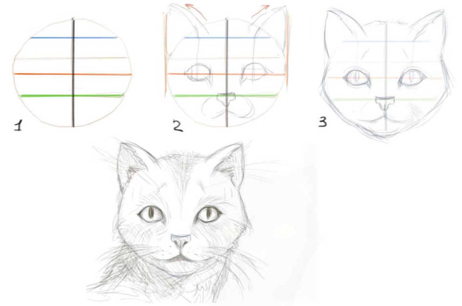 Итак, давайте посмотрим на шаги, которые вы должны выполнить, чтобы научиться рисовать правдоподобную кошку.