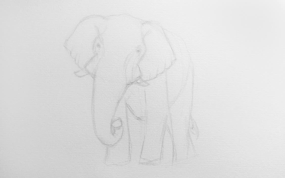 После того, как фигура слона станет читаемой, можно переходить к деталям, прорисовывая стопы, хобот и глаза