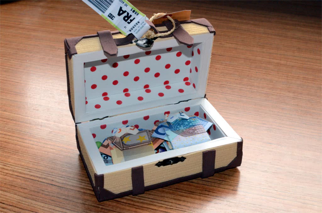 Зрелище будет эффектным, если положить большое количество купюр. При желании можно сфотографировать этот момент, ведь он будет неповторимым. Часто купюры дарят в необычном пиратском сундуке или шкатулке. Так можно подарить деньги на юбилей подруге с приколом. Используемую шкатулку необязательно наполнять только купюрами. Можно положить внутрь другие вещи, подобранные с учетом предпочтений именинницы: разноцветные камешки, являющиеся имитацией жемчуга и рубинов; конфеты и миниатюрные шоколадки; небольшие стильные аксессуары для модницы. Такой способ вручения презента обязательно запомнится надолго. Также интересно подарить деньги в рамке на день рождения. Презент готовится легко, быстро. Рамка раскрывается. На основу для фотографий укладывают фоновую бумагу (желательно выбрать темную). Темный цвет будет контрастным, и он выгодно выделит светлую купюру. Затем на рамку крепят поздравление с праздником или наставление по поводу траты купюры (зависит от ситуации и причины, почему дарят деньги). Выше надписи кладут нужное количество купюр. Рамку осторожно закрывают. Готовый подарок желательно упаковать в подарочную упаковку: человек не сразу догадается о том, какой презент был подготовлен.
