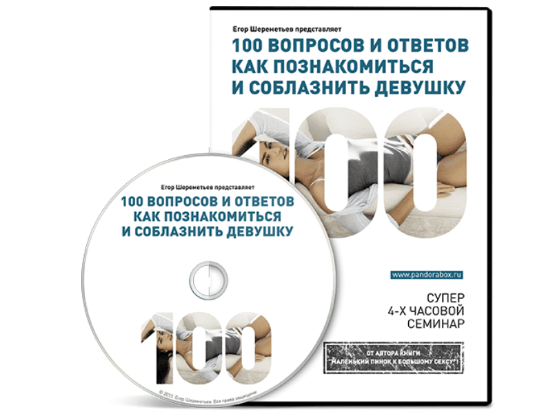 Описание. Егор Шереметьев ведет курсы по отношениям более десяти лет. За это время он провел несколько тысяч индивидуальных консультаций. Их результат – семинар “100 вопросов и ответов: как познакомиться и соблазнить девушку”. Все самое сложное, проблемное и наболевшее собрано здесь.