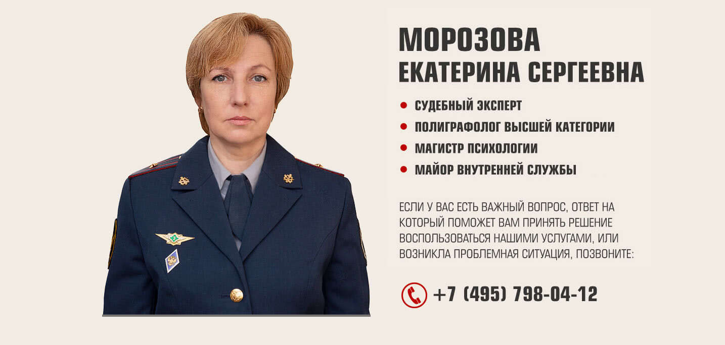 Наряду с высшей квалификацией полиграфологов, наши специалисты имеют официальные свидетельства и разрешения на ведение профессиональной деятельности в качестве экспертов-полиграфологов, выданные Государственными органами (МВД России), учёные степени, высшее психологическое, юридическое и медицинское образование и более чем 15-летний практический опыт работы в следственных и оперативных подразделениях, а также являются аттестованными научными сотрудниками МВД, что позволяет им в настоящее время использовать все свои знания и наработанный опыт на самом высоком профессиональном уровне.