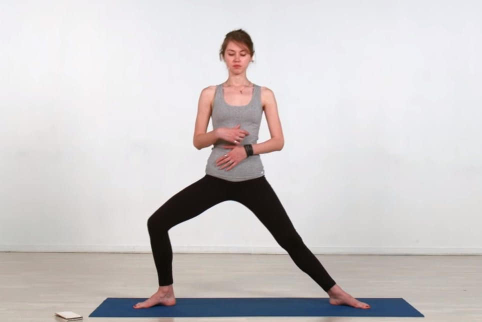 - Расставьте ноги шире уровня плеч, носки должны смотреть наружу.