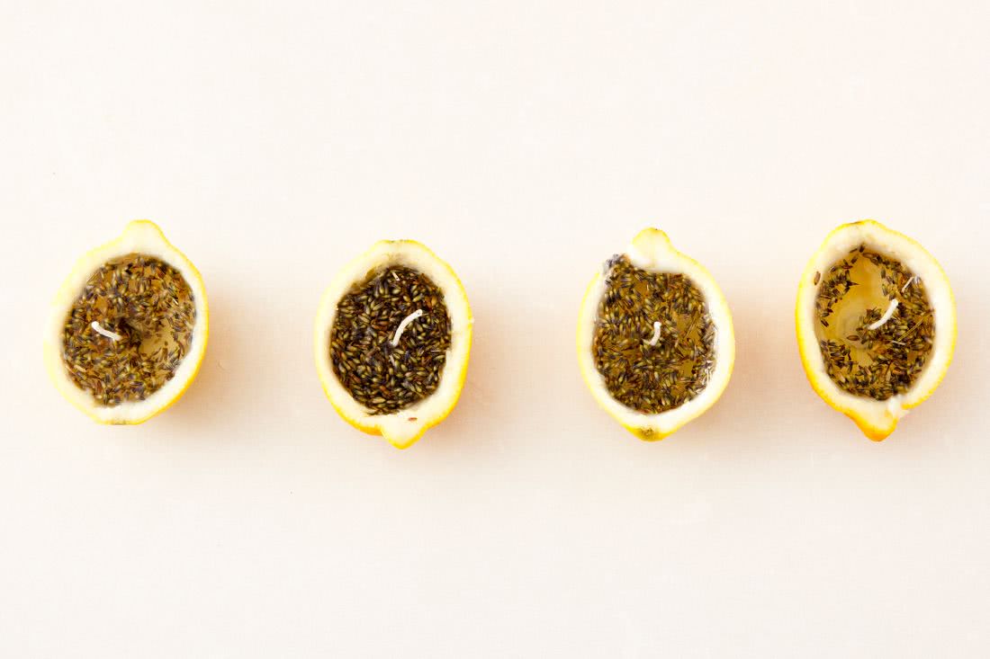 «Вкусные» свечи: фруктовая свеча из половинки лимона и свеча из кофе