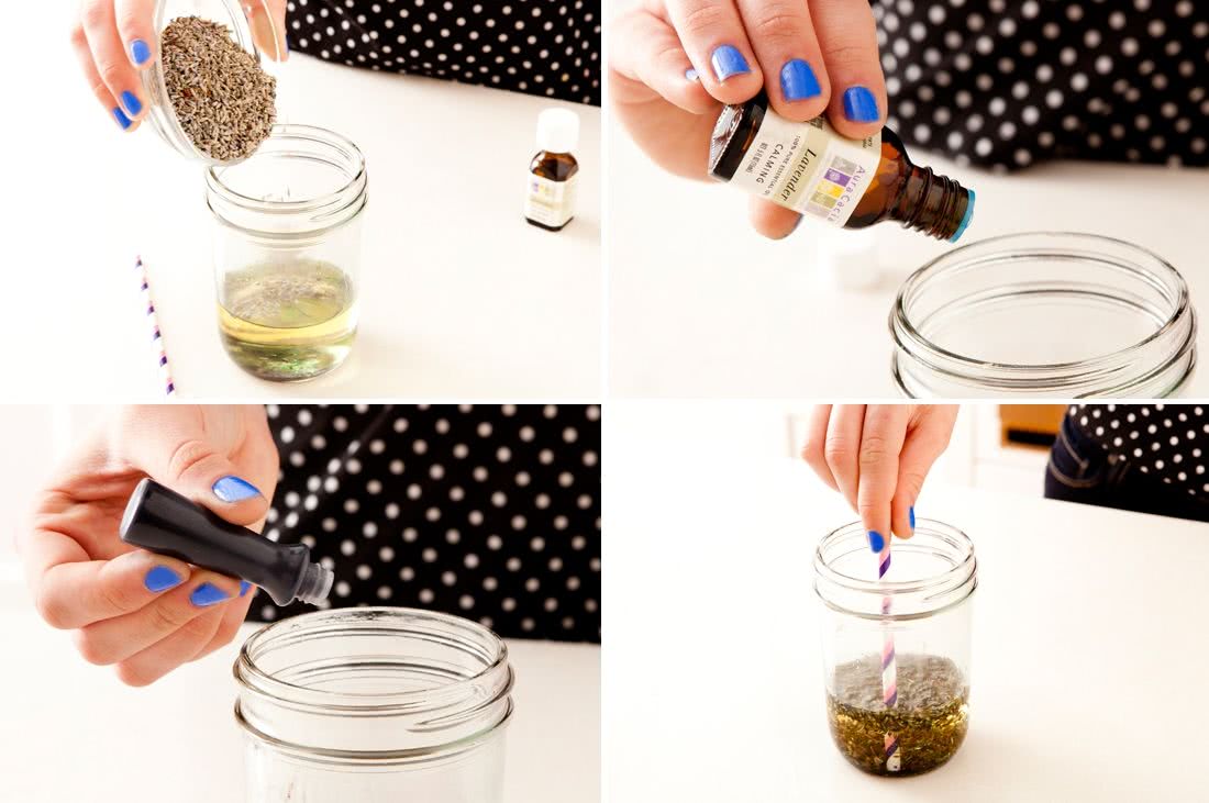6. Снова разогрейте воск, добавьте туда оставшиеся кусочки и растопите. Затем добавьте по несколько капель любимого эфирного масла. Можно делать моно запахи, а можно попробовать смеси. Например, несколько капель кедрового масла, пару капель эвкалиптового и три капли цитрусового эфирного масла. Хорошо размешайте воск деревянной лопаткой.