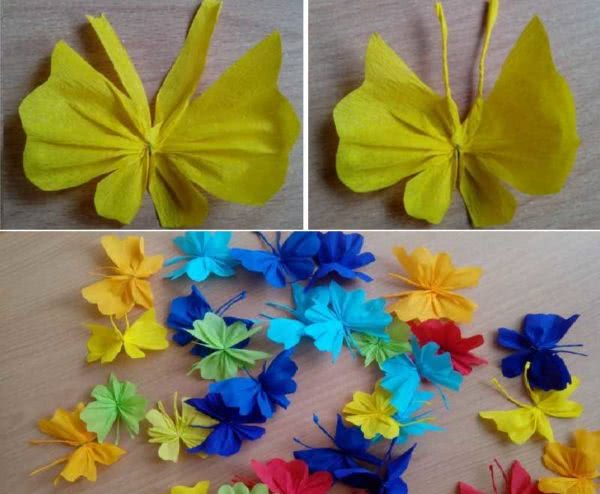 Бабочки для декора из гофрированной бумаги получаются воздушными и легкими