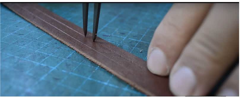 - Вырезать из кожи выкройку в форме прямоугольника шириной от 4 см, оставив нахлёст для застёжки 2,5 см.
