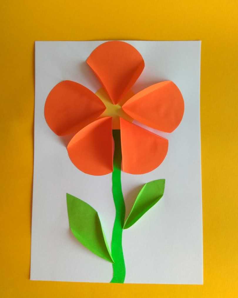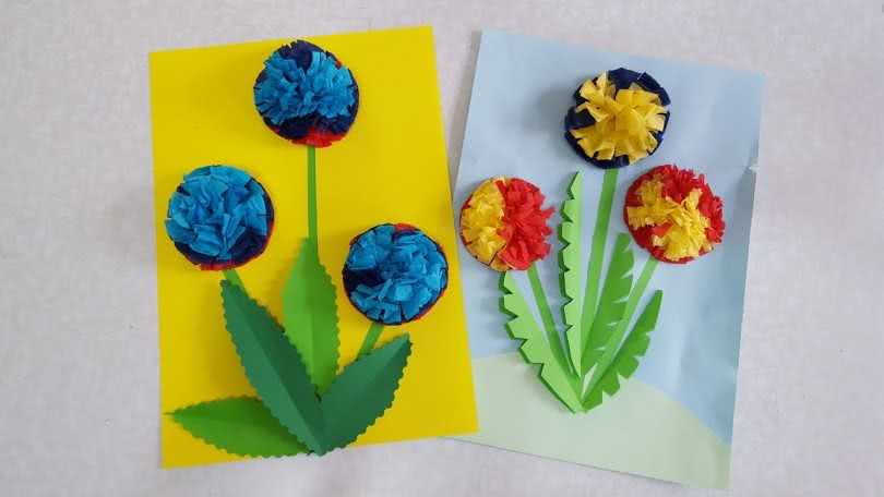 Соедините два конца клеем, чтобы получилось сложенное в гармошку кольцо с прямым краем внизу и зигзагообразным сверху. Сожмите прямой край так, чтобы сгладить цветок. Вырежьте 2 маленьких кружка и прикрепите в центре цветка с обеих сторон. Сверните тонкую синюю полоску. Вырежьте больше фигур — белый цветок, зеленый стебель и зеленый лист. Наклейте форму белого цветка поверх гармошки. Приклейте свернутую катушку по центру последнего рисунка. И наконец, прикрепите цветы на верхнем конце стебля с листом. И как только вы отрежете кусочки, даже маленькие дети могут помочь собрать их вместе — сделайте это веселым семейным проектом!