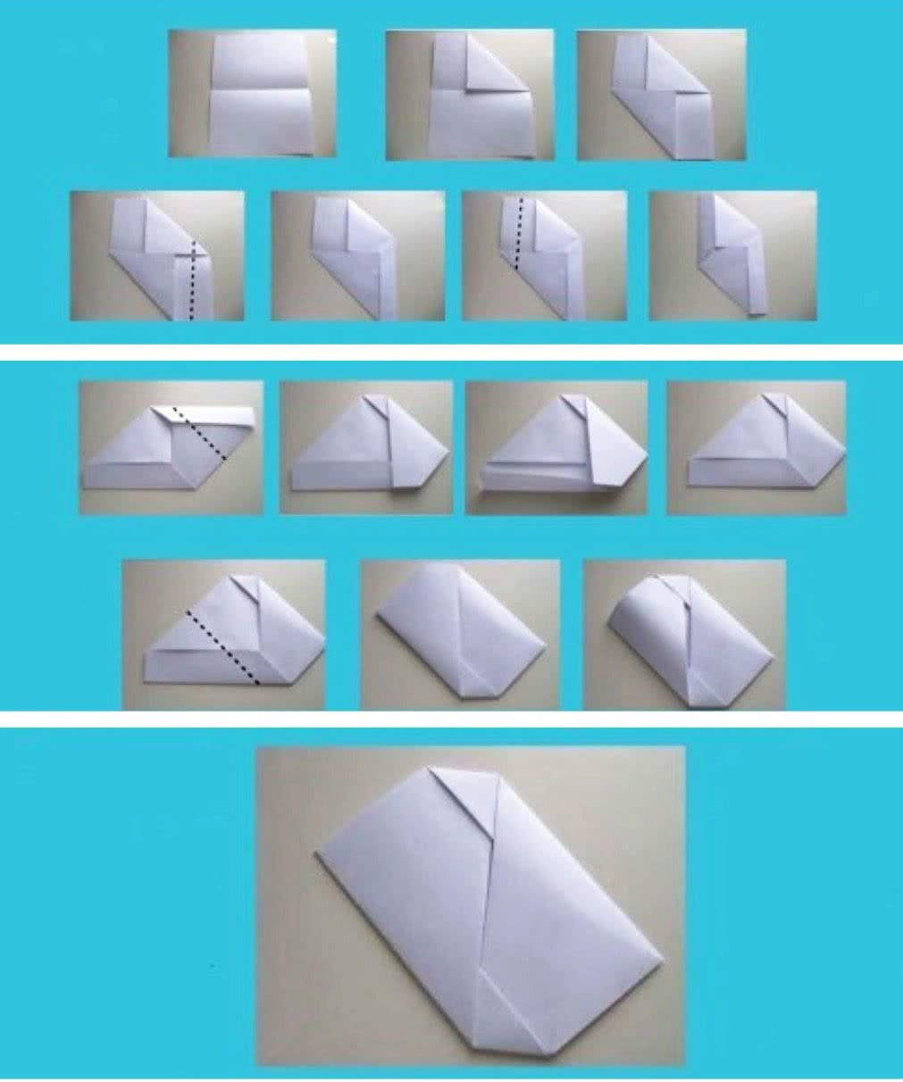 Если срочно потребовалось отправить прямоугольную корреспонденцию, например, документ, который не желательно складывать в несколько раз, или большую открытку, но нет подходящего конверта под рукой, то огорчаться не стóит. Его можно быстро сделать самостоятельно по простой схеме: