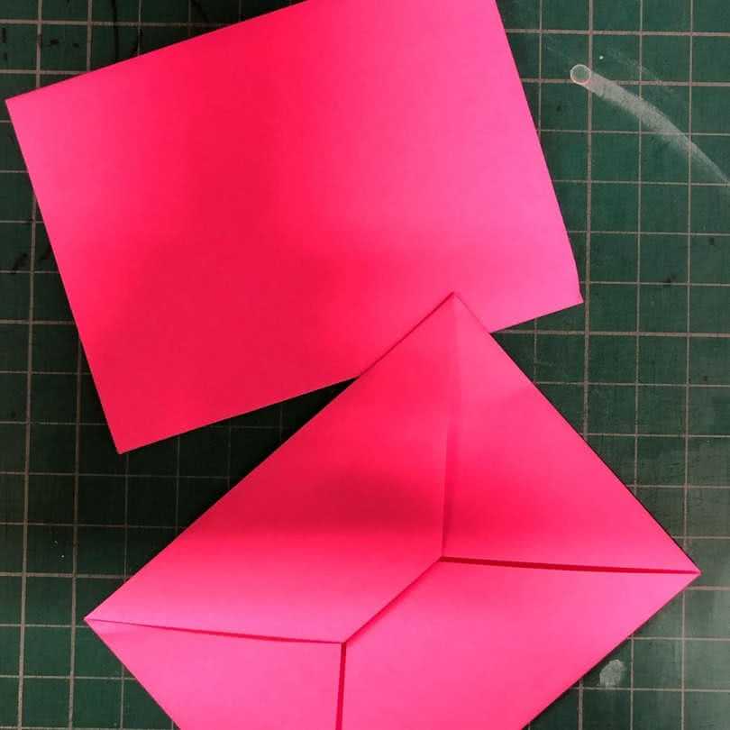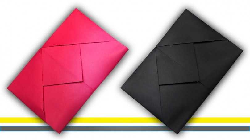 Вот еще пример, как сделать простой бумажный конверт своими руками без клея и ножниц.