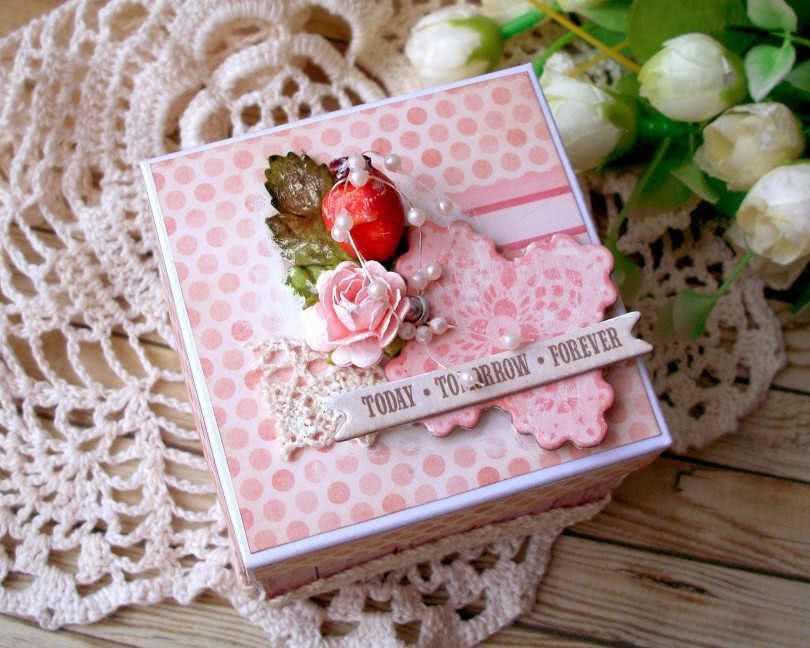 Прочную коробку можно оформить в технике декупаж или скрапбукинг, чтобы она стала похожа на шкатулку. Есть шанс, что она долго прослужит в этом качестве и принесет не меньше радости, чем сам подарок. Конечно, эта трудоемкая работа только для особых случаев.
