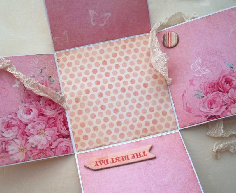 - После сгибания и сборки коробки её нужно украсить. Для этого часто используют ленту, аппликации и цветочки. После украшения остается только проклеить двухсторонним скотчем внутренние концы.