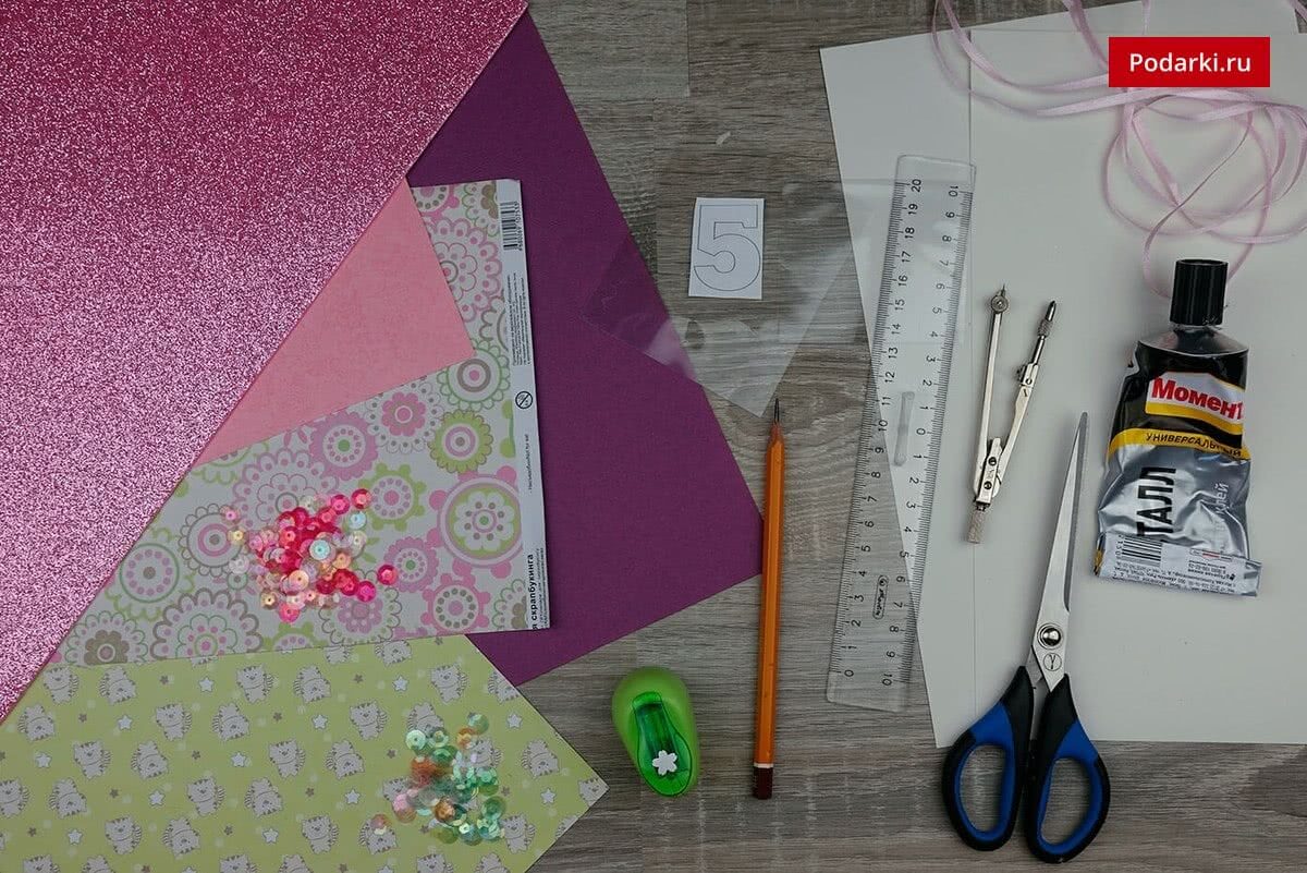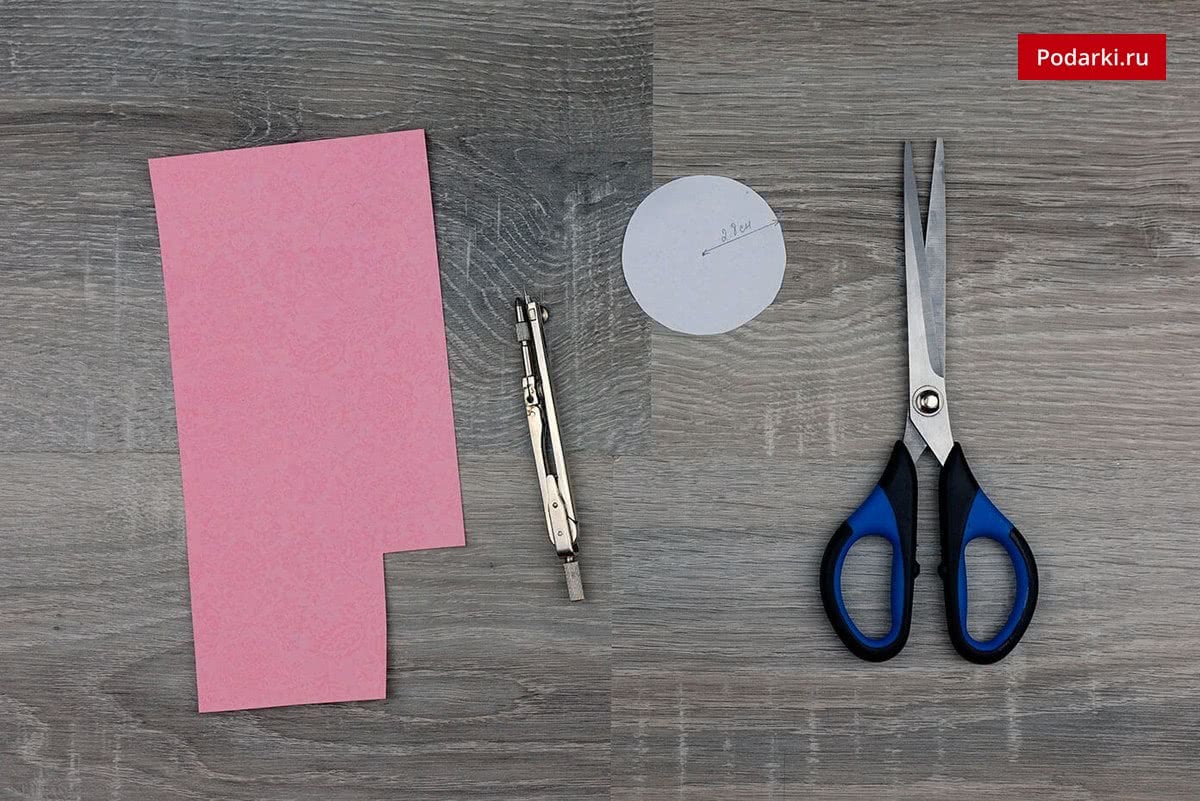 Перед тем как сделать из бумаги такую открытку, подготовьте: