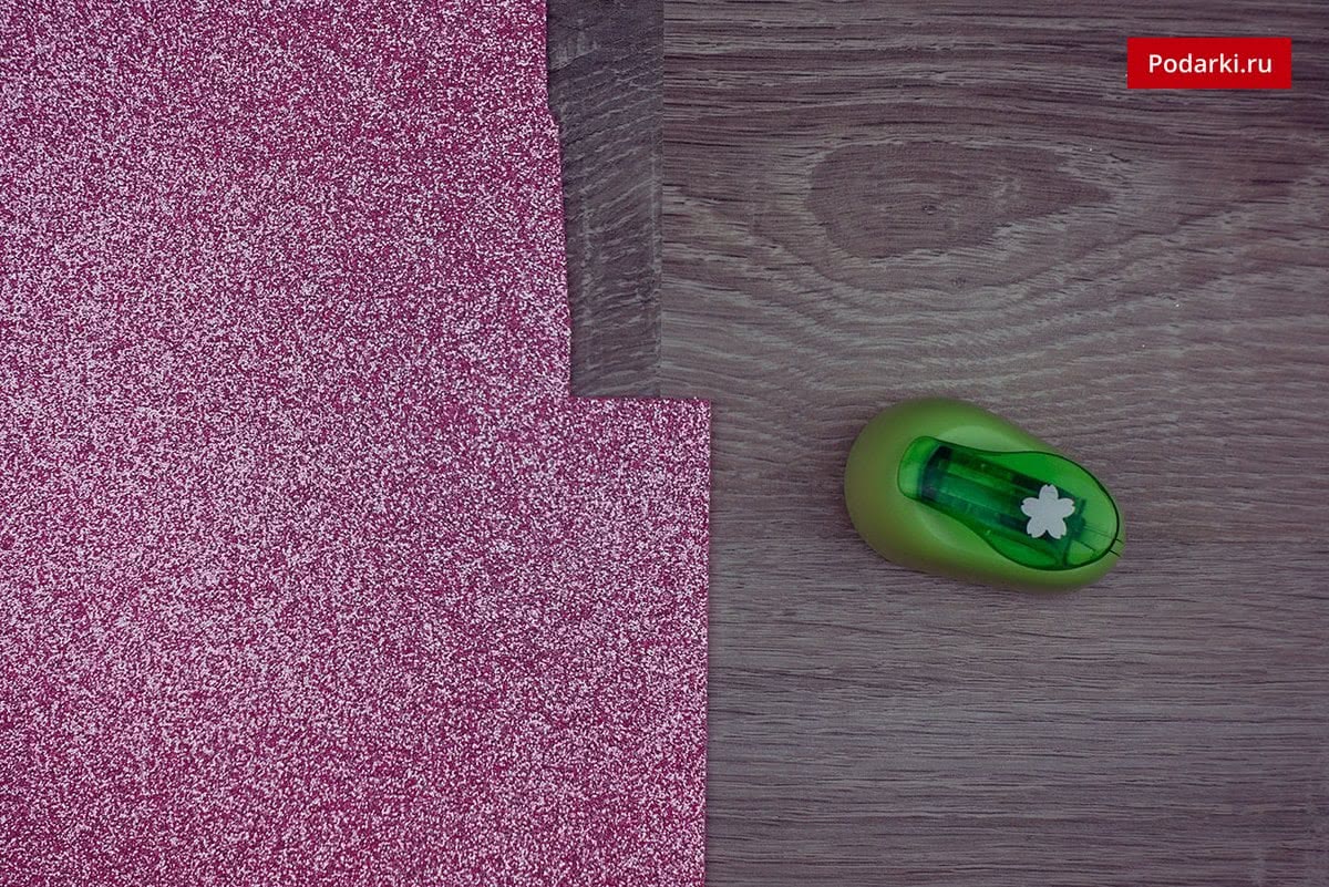 Из того же фоамирана с помощью декоративного дырокола нарезаем цветочки.