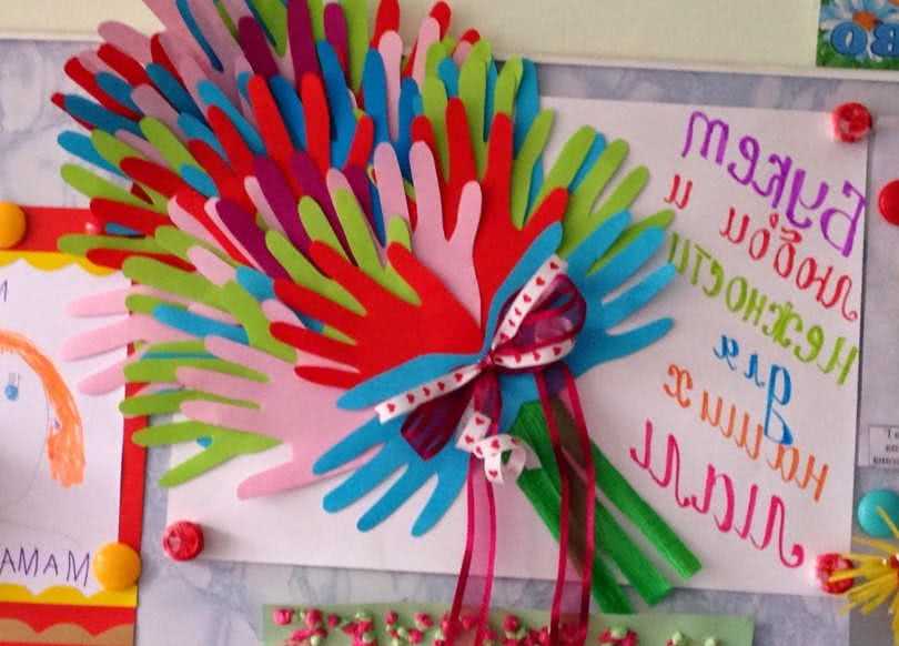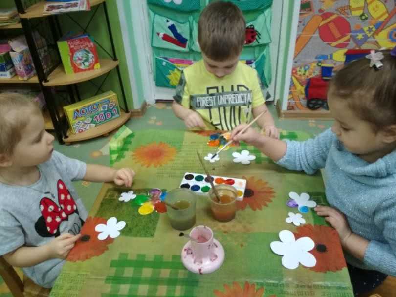Можно нарисовать цветы при помощи ладошек и пальчиковых красок.