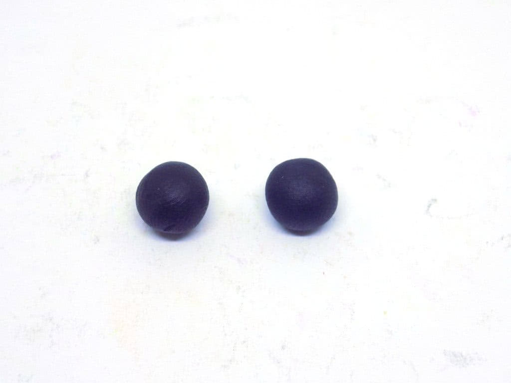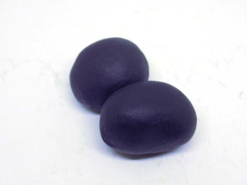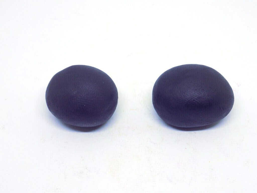 Начнем лепку киски с создания туловища и головы. Для этого из черного пластилина катаем пару шариков среднего размера.