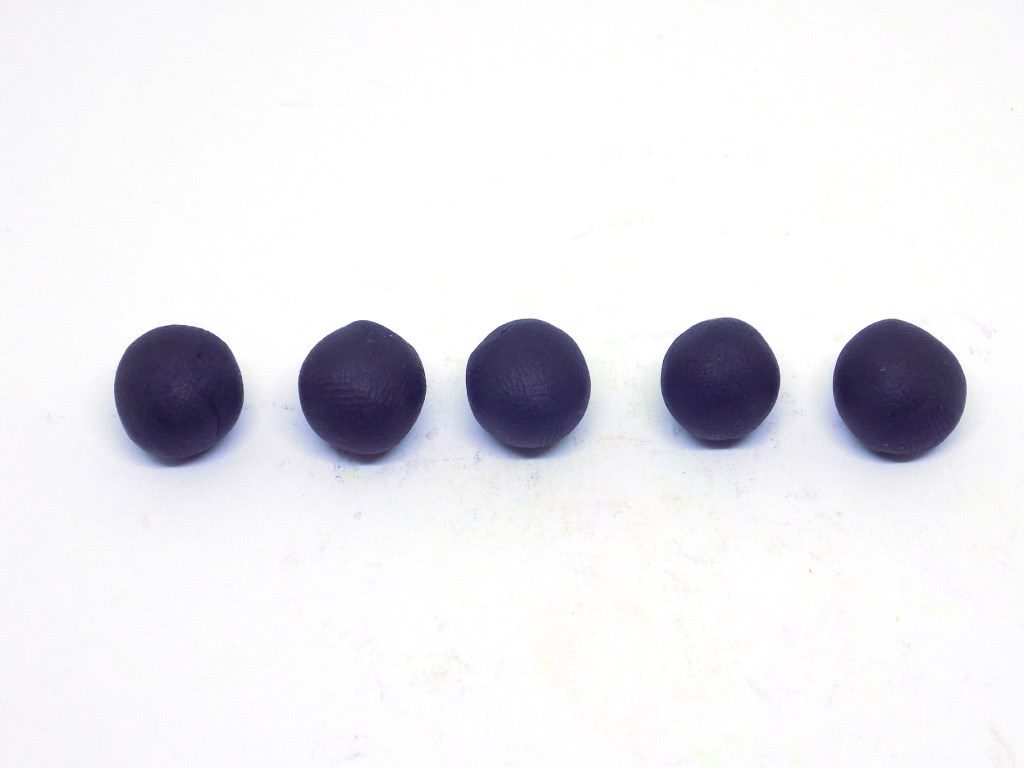 Теперь для лапок и хвостика готовим 5 небольших шариков, их также делаем из черного пластилина.