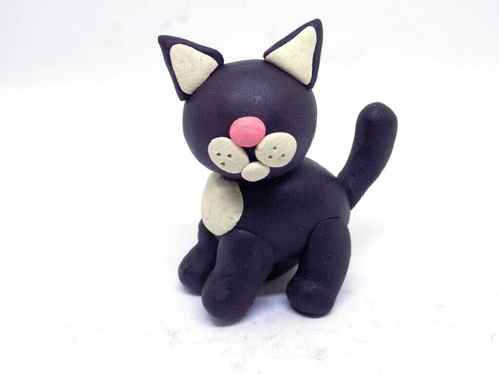 Прикрепите все мелкие детали к мордочке. Кошка готова. Вы узнали, как сделать из пластилина кошку для маленьких деток. Кошечка не обязательно будет стоять, ваш малыш может ей придать сидячий или лежачий вид.