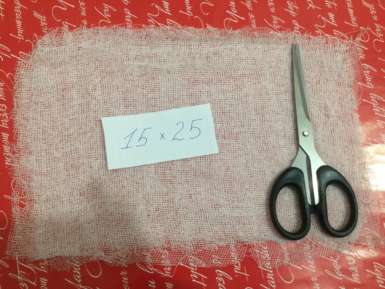 Отмеряем вдвое сложенную марлю – 90 см в длину и 40 см в ширину.