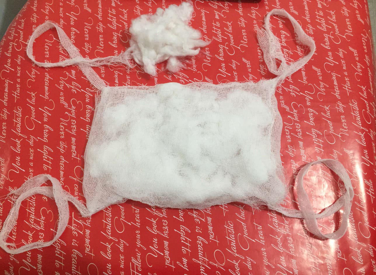 В центр, внутрь марли, вставляем расправленный квадрат ваты.